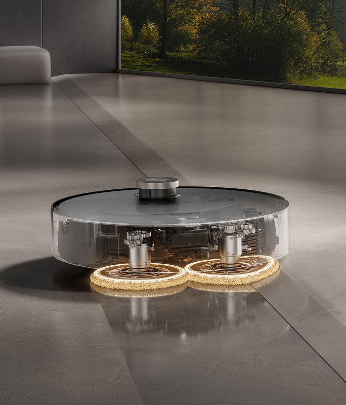 Nyd en fuldautomatisk rengøringsoplevelse, når MOBIUS 60 på en smart måde adskiller støvsugning og gulvvask ved at løfte mopper eller sidebørste, når de ikke er i brug.