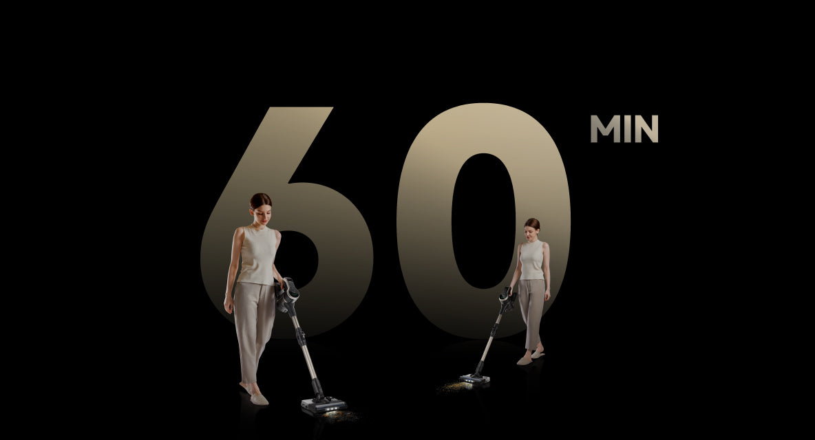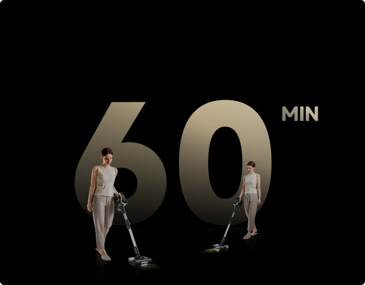 Over 60 min.* driftstid med rullebørsten