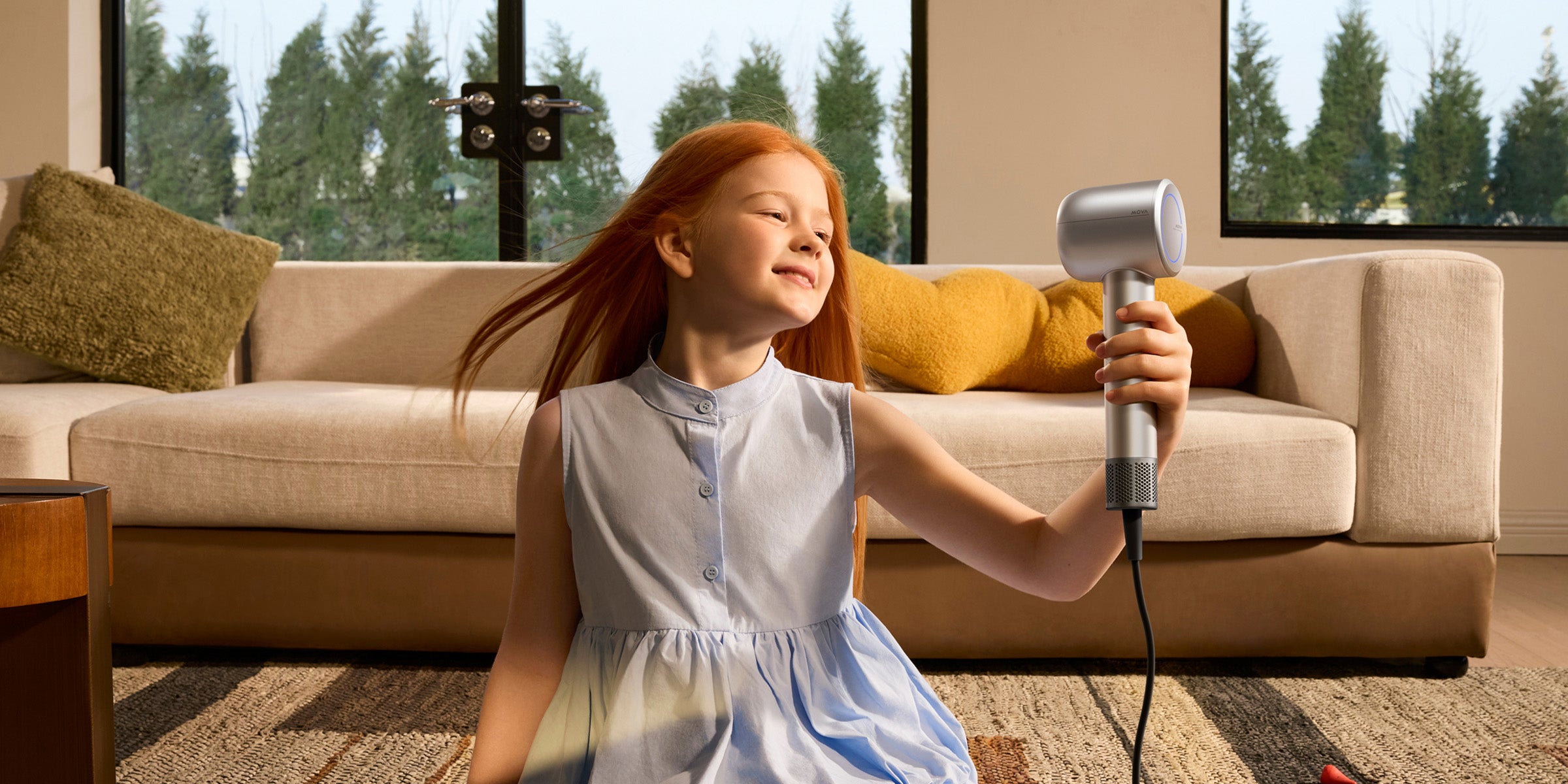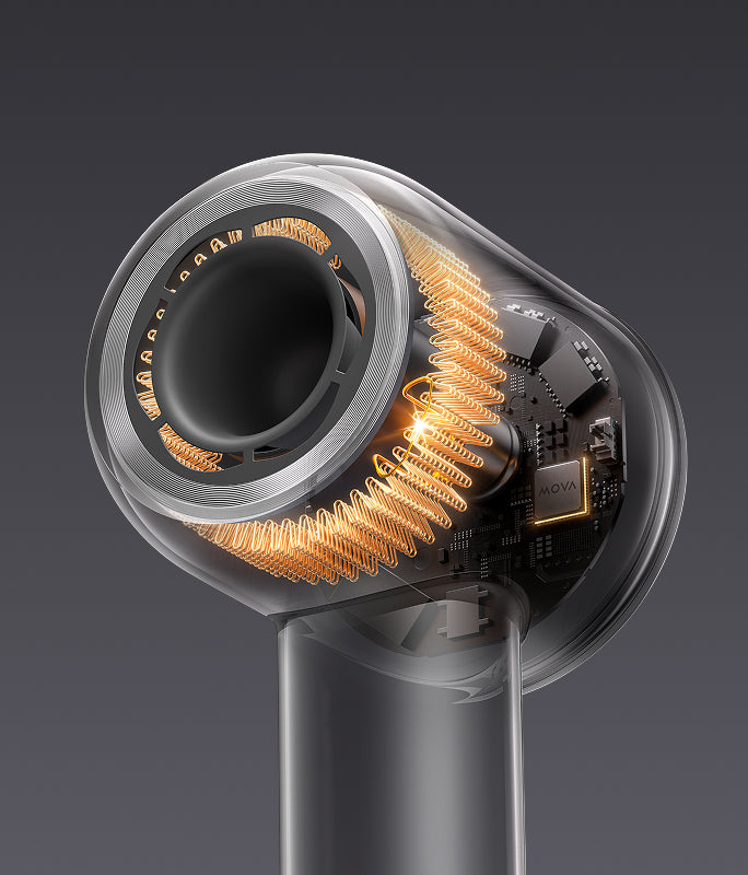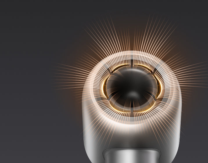Den innovative blomsterformede luftudgang er designet til at optimere luftstrømmen og sikre en mere jævn fordeling af luftstrømshastighed og temperatur. Dette større design giver en mere effektiv tørringsoplevelse i modsætning til traditionelle ringformede udgange. Med denne avancerede teknologi tørrer dit hår hurtigere, samtidig med at der opretholdes en ensartet og skånsom luftstrøm.
